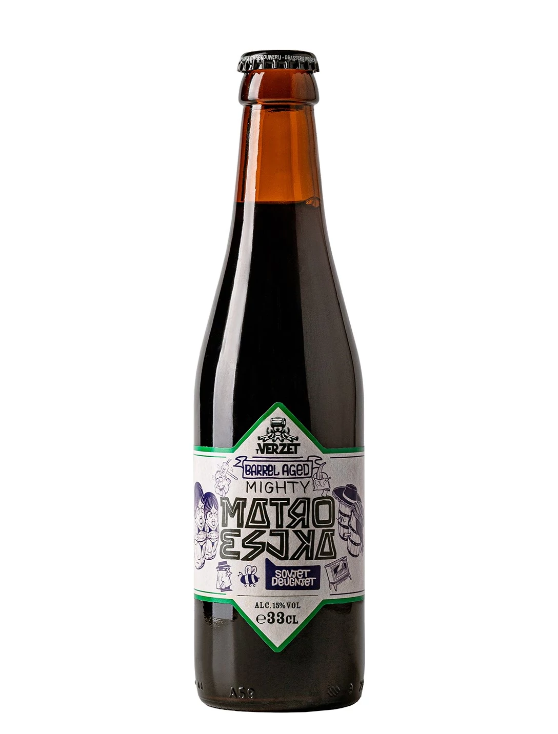 A Mighty Matroesjka egy imperial stout, amelyet a belga tVerzet sörfőzde három igencsak különböző karakterű hordóban érlelt: édeskés, aszalt gyümölcsös-mézes karakterét a Dada Chapel genti lepárló rumos hordójától kapta, ahonnan a Filliers nevű, szintén belga jenever lepárló hordójába került át. Végül pedig a híres skót felföldi gyártó, a Glengoyne használt Amontillado-s hordójában pihent, mely meleg fűszeres karaktert kölcsönzött ennek a hihetetlenül komplex, robusztus tételnek.